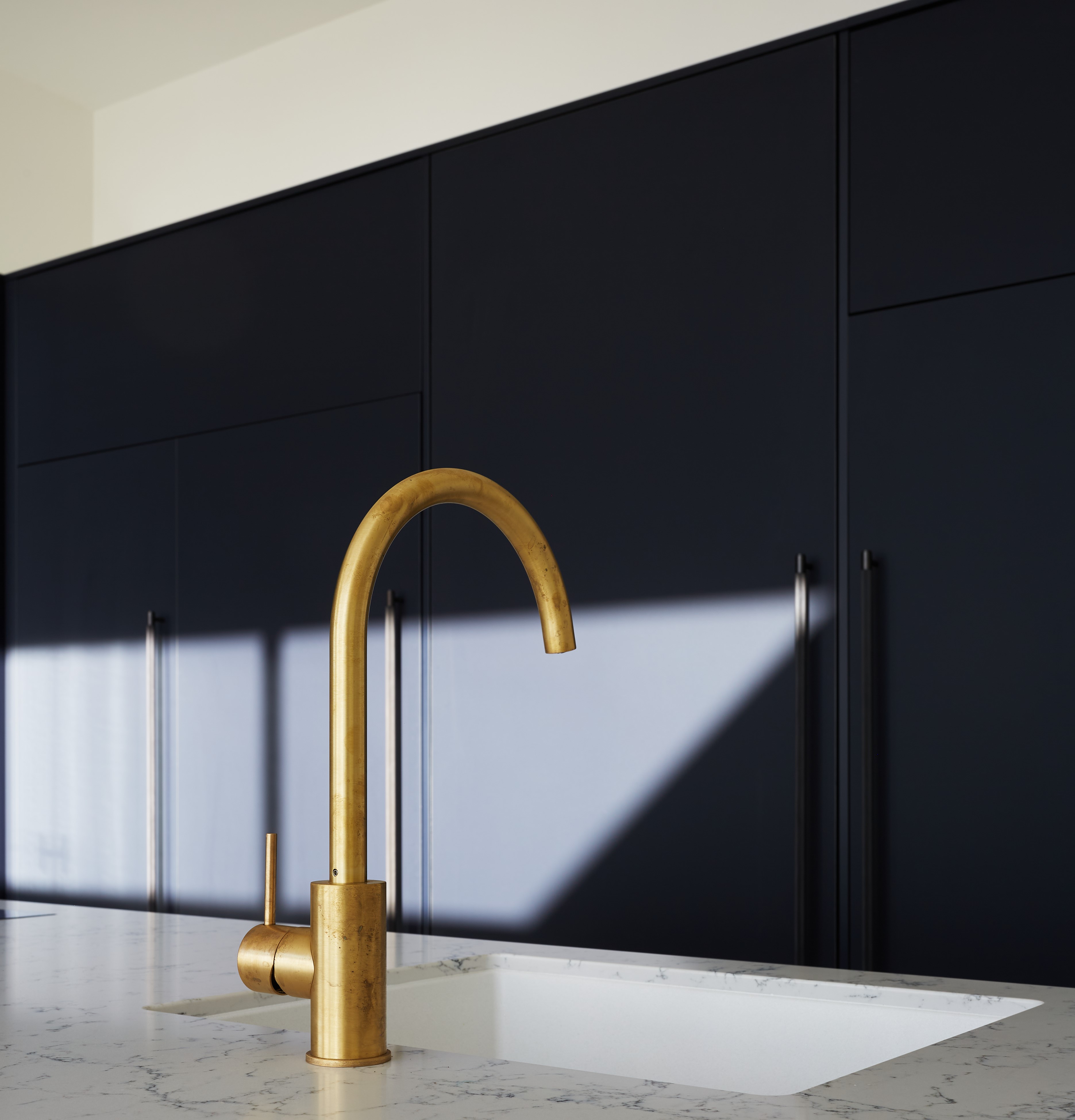 Inky Blue and Brass a great kitchen combo